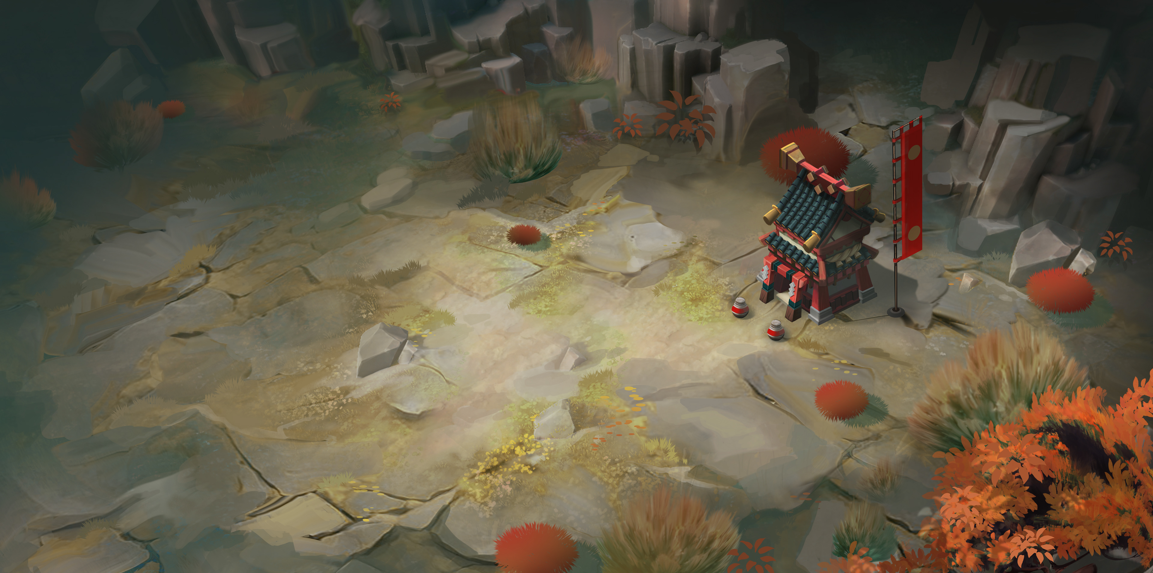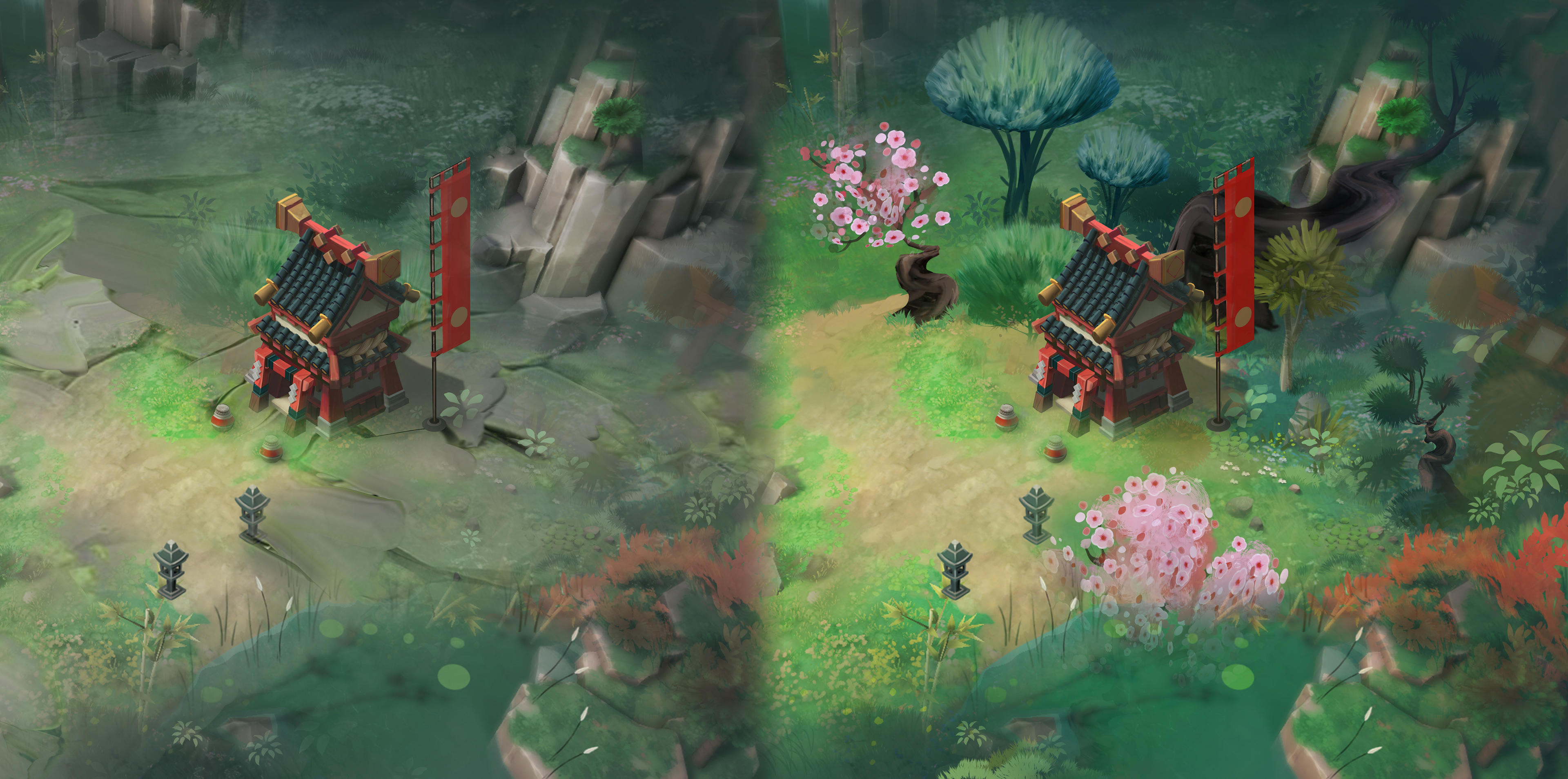 Atmosphere test with vegetation paintover and props